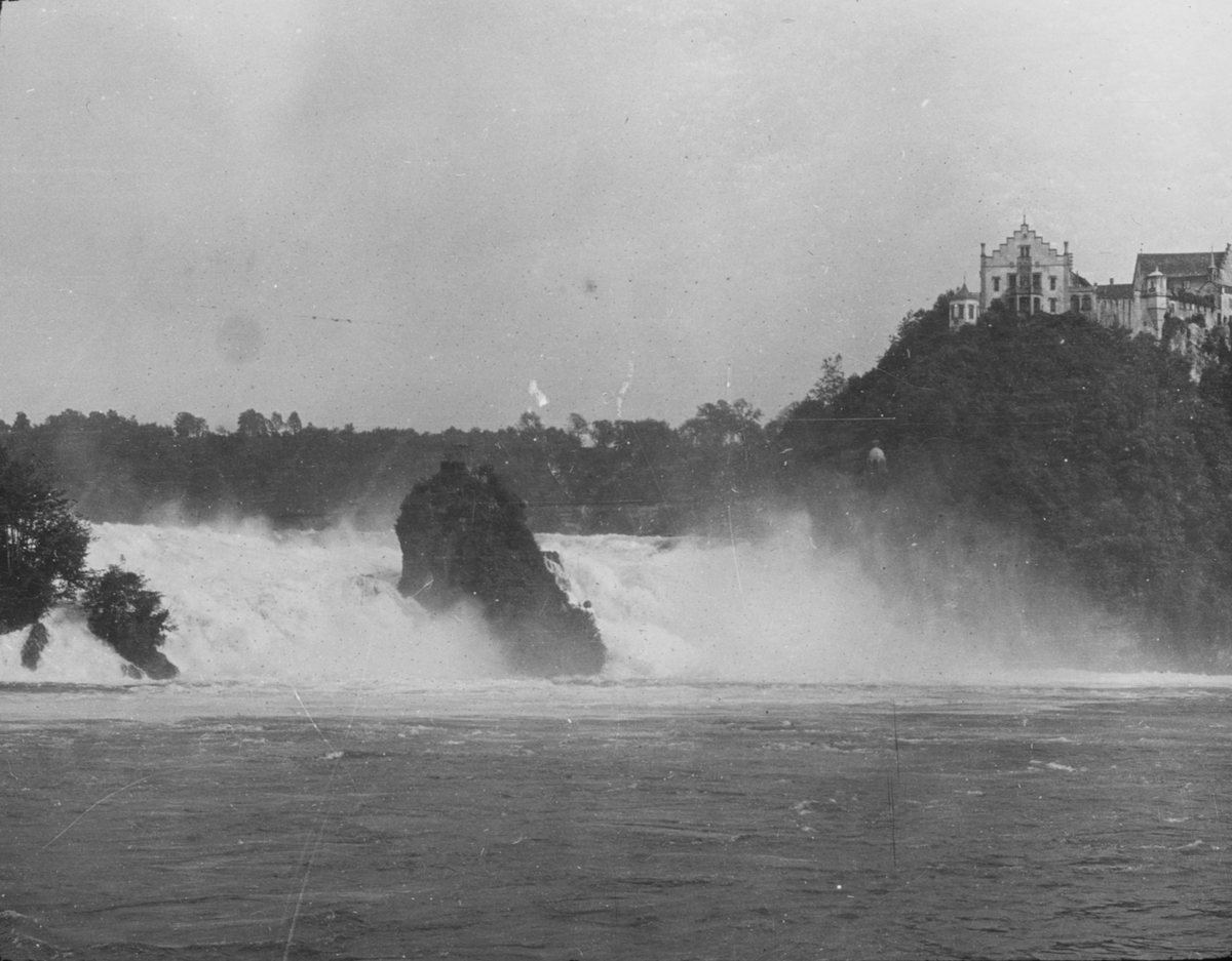 Skioptikonbild med motiv av Rheinfallen vid Neuhausen.