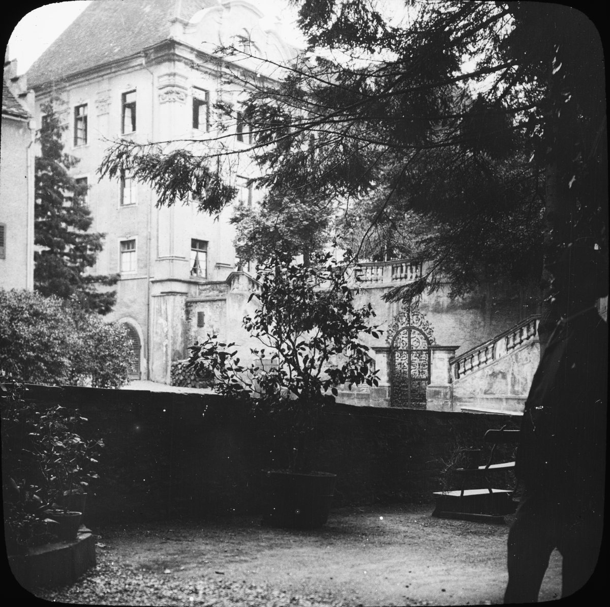 Skioptikonbild med motiv från Meersburg, möjligen Neues Schloss.