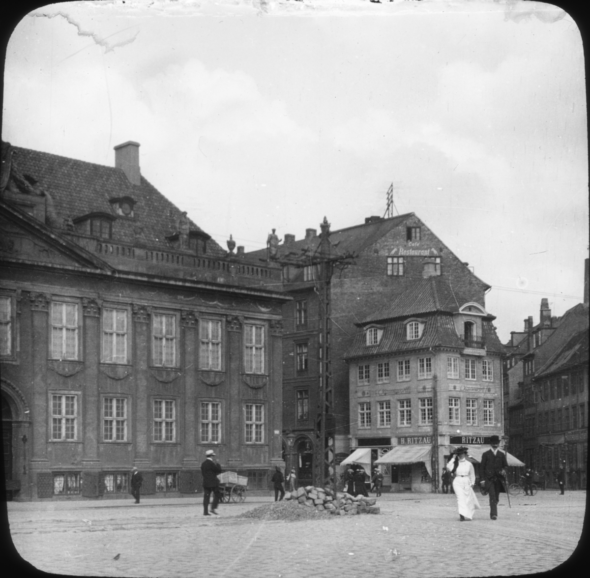 Skioptikonbild med motiv från Köpenhamn. Kongens Nytorv.