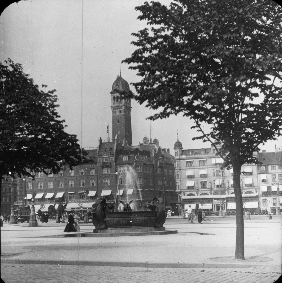Skioptikonbild med motiv från Rådhusplatsen, Köpenhamn.