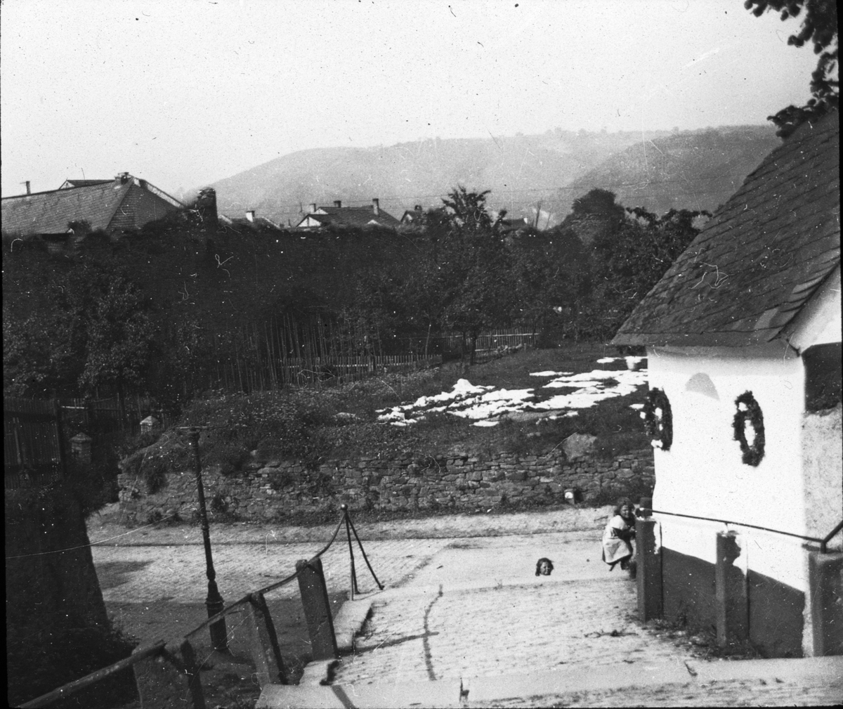 Skioptikonbild med motiv från okänd stad i Tyskland. Möjligen ingång till okänd kyrka.