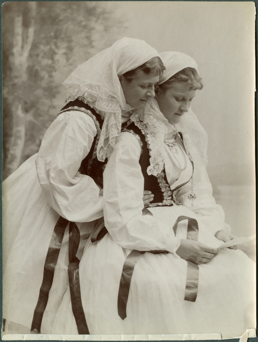 Ateljéporträtt av kvinnor i nationaldräkt.