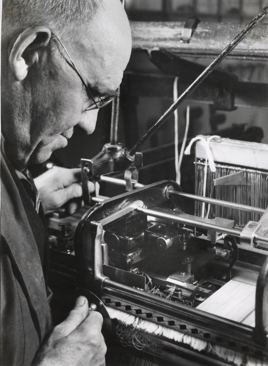 Man vid knutmaskin på Stockholms Bomullsspinneri- & Väfveri AB, Stockholm,1948.
