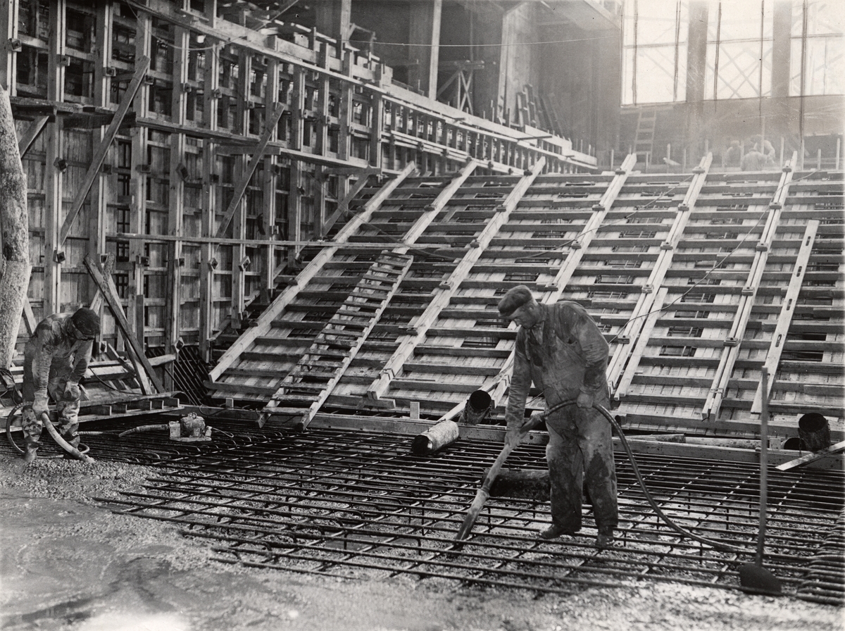 Gjutning av badbassängen i Forsgrenska medborgarhuset på Söder i Stockholm med vibro-stavar.