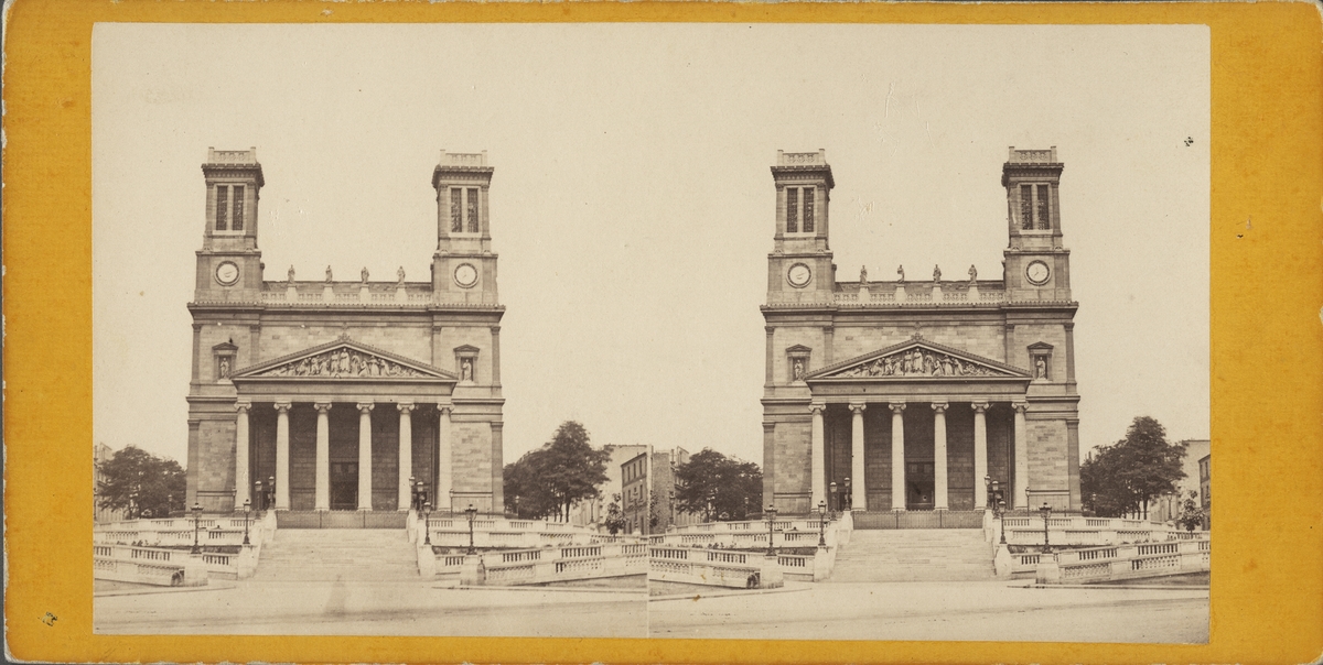 Stereobild med motiv av kyrkan Église Saint-Vincent-de-Paul i Paris. Kyrkan uppfördes mellan 1824-1844 på platsen för det gamla fängelset Saint-Lazare.