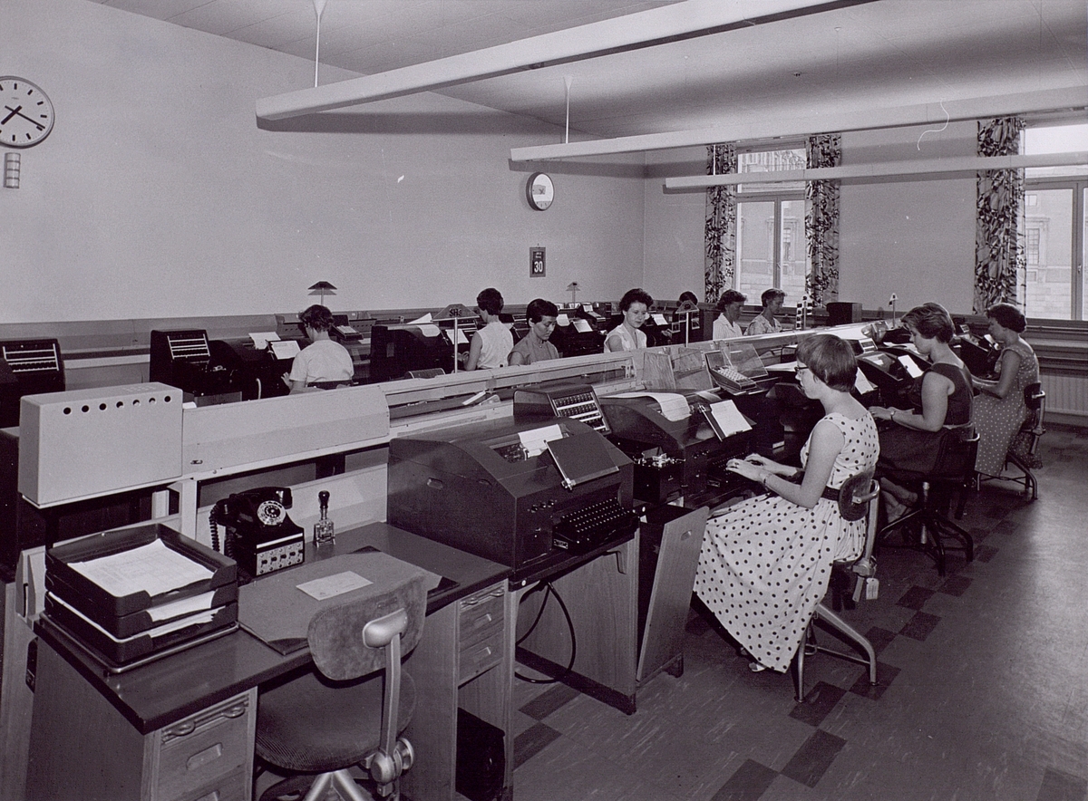Stockholm, Skeppsbron 2 Trådsal A. Teleprinterexp. på de utländska trådförbindelserna. 1960.