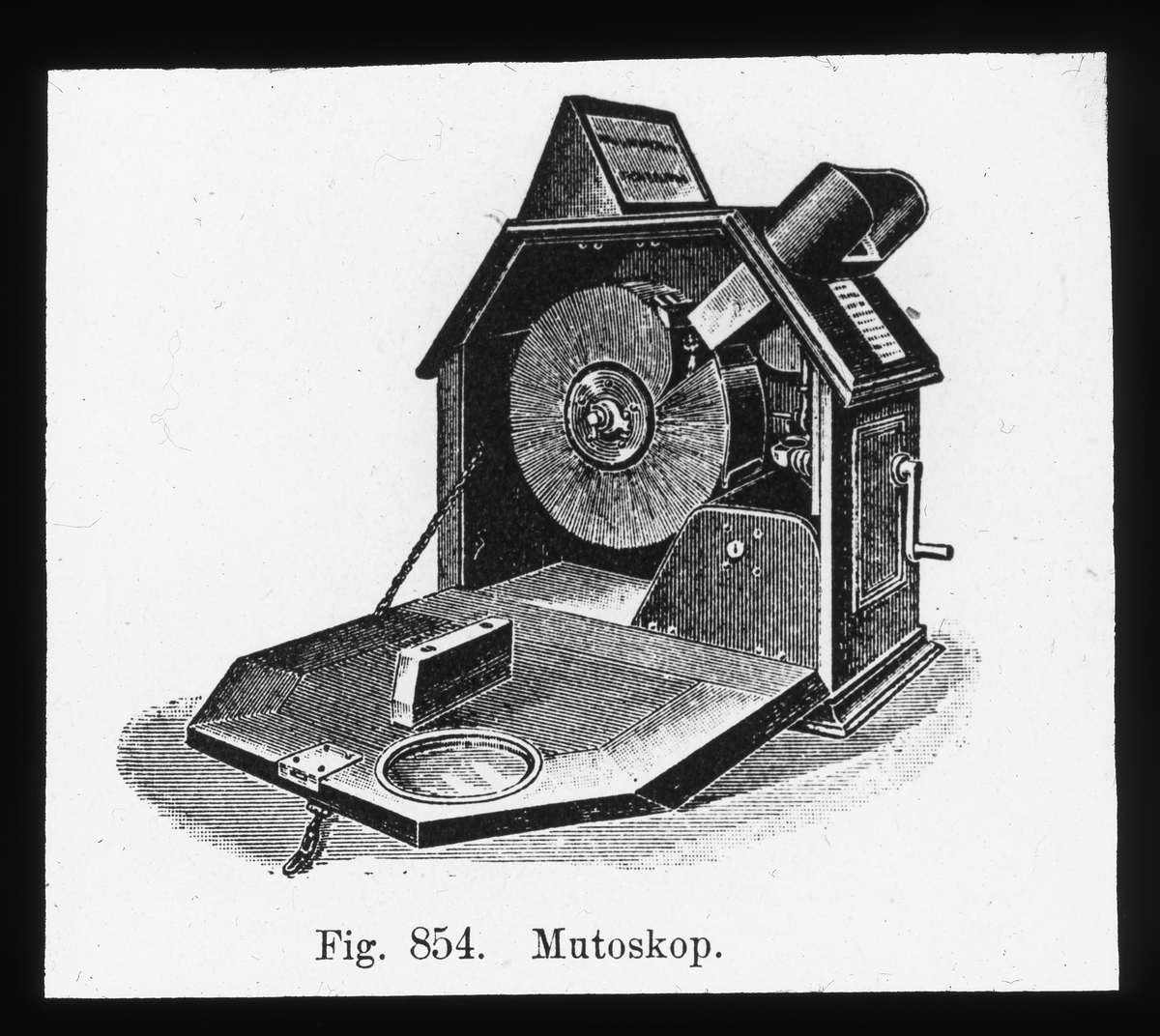 Geöffnetes mutoskop för betraktning av bilder i rörelse.