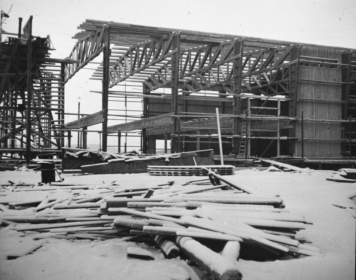 Skioptikonbild med motiv från Kramfors fiberplattefabrik.Bild nr. 13.