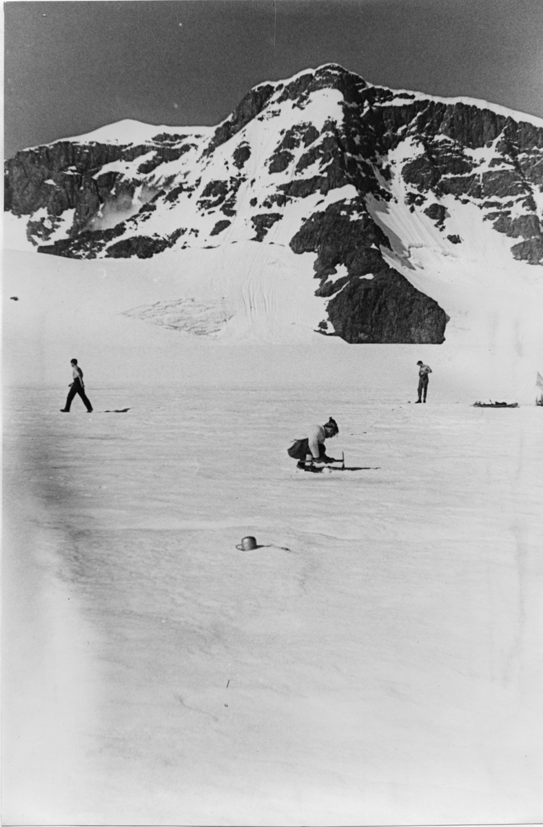 "Seismisk reflektionsmätning" på Kebnekaise storglaciär i juli-augusti 1949.
