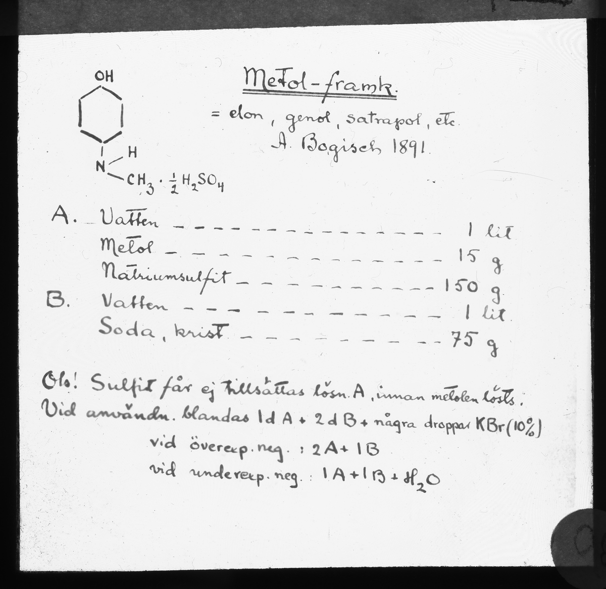 Framkallningsschema, kemi, mentol-hydrokinon.