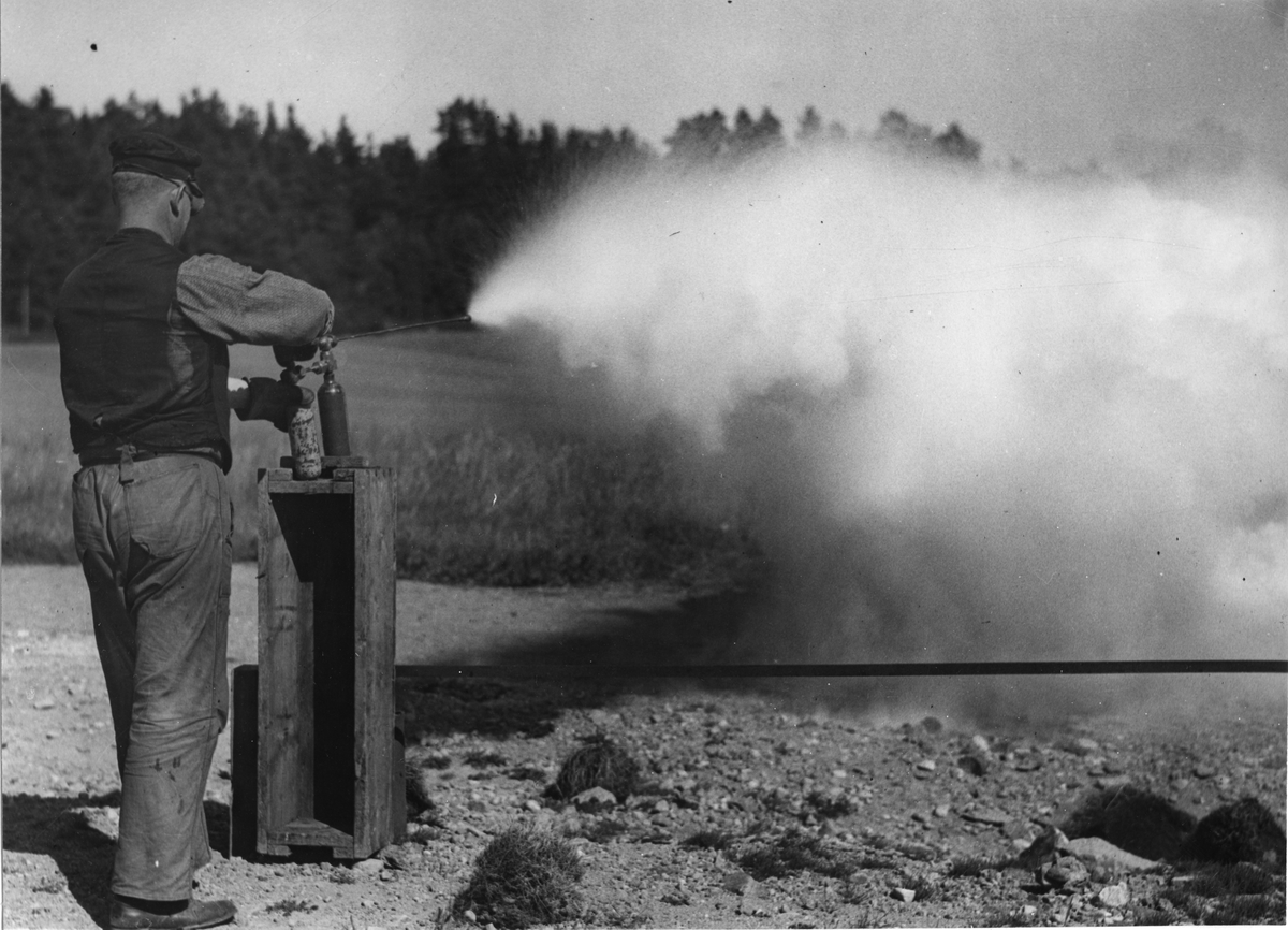 Besprutning av åker med så kallad regnkanon.