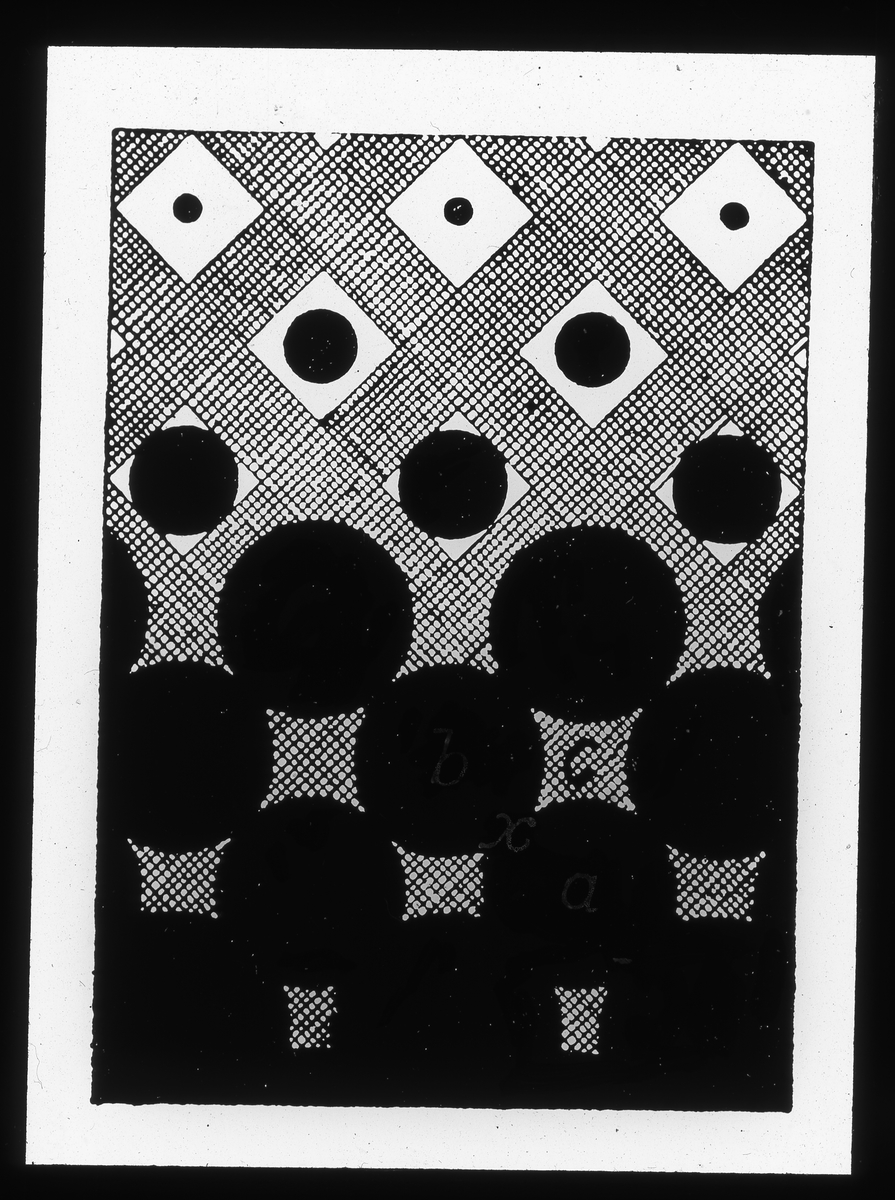 Skioptikonbild från Institutionen för fotografi vid Kungliga Tekniska Högskolan. Använd av professor Helmer Bäckström som föreläsningsmaterial. Bäckström var Sveriges första professor i fotografi vid Kungliga Tekniska Högskolan i Stockholm 1948-1958.
