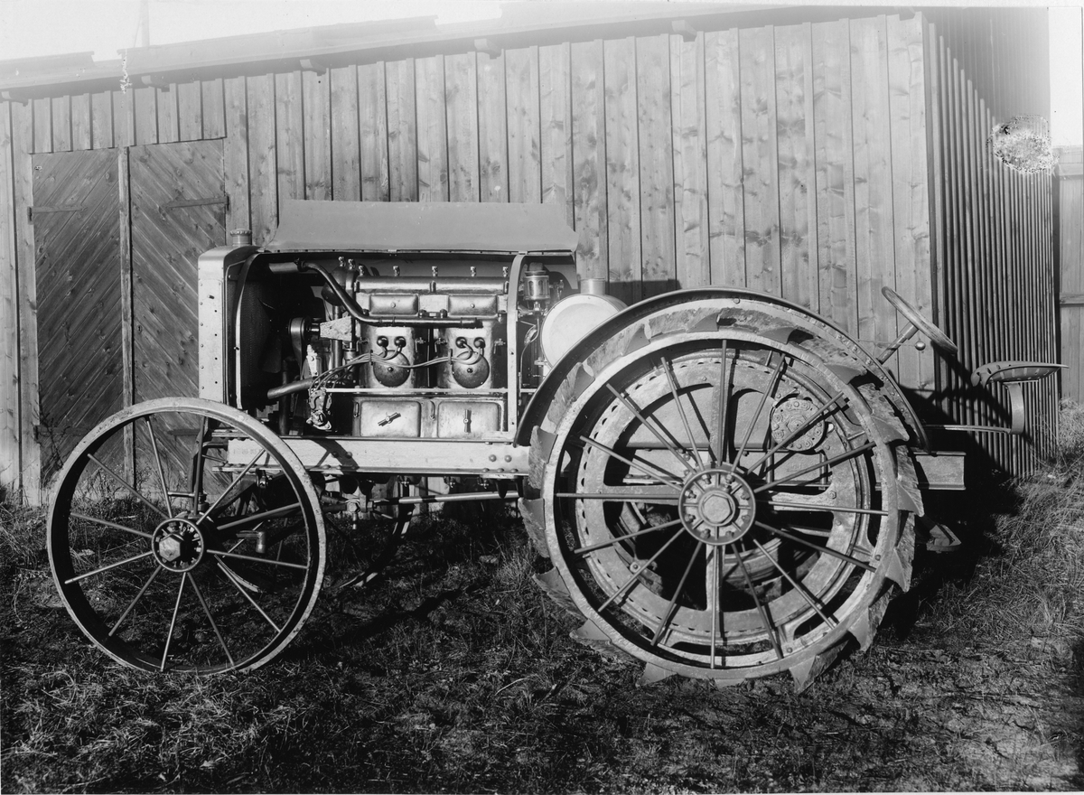 Traktorfordon med öppen motorhuv. Dieselmotor Penta typ C4.