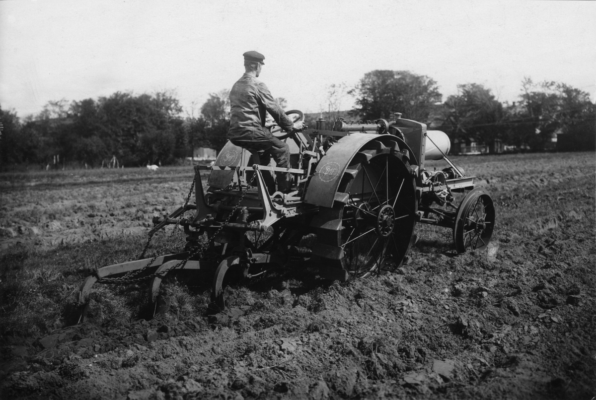 Fordonstraktor med plog.