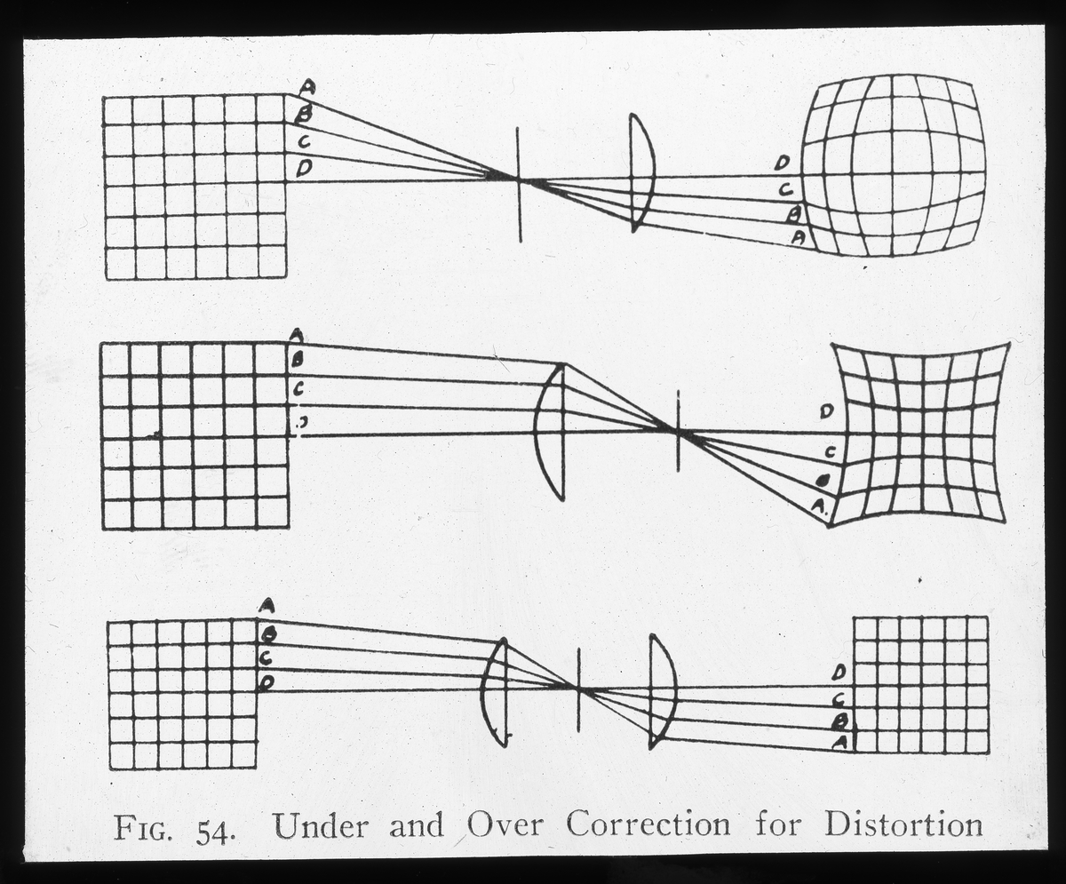 Distortion (missteckning eller felteckning). Alltefter bländarens placering framför eller bakom objektivet erhålles tunnformig eller kuddformig missteckning. Vid symetrisk placering av bländaren i ett objektiv undvikes detta fel.