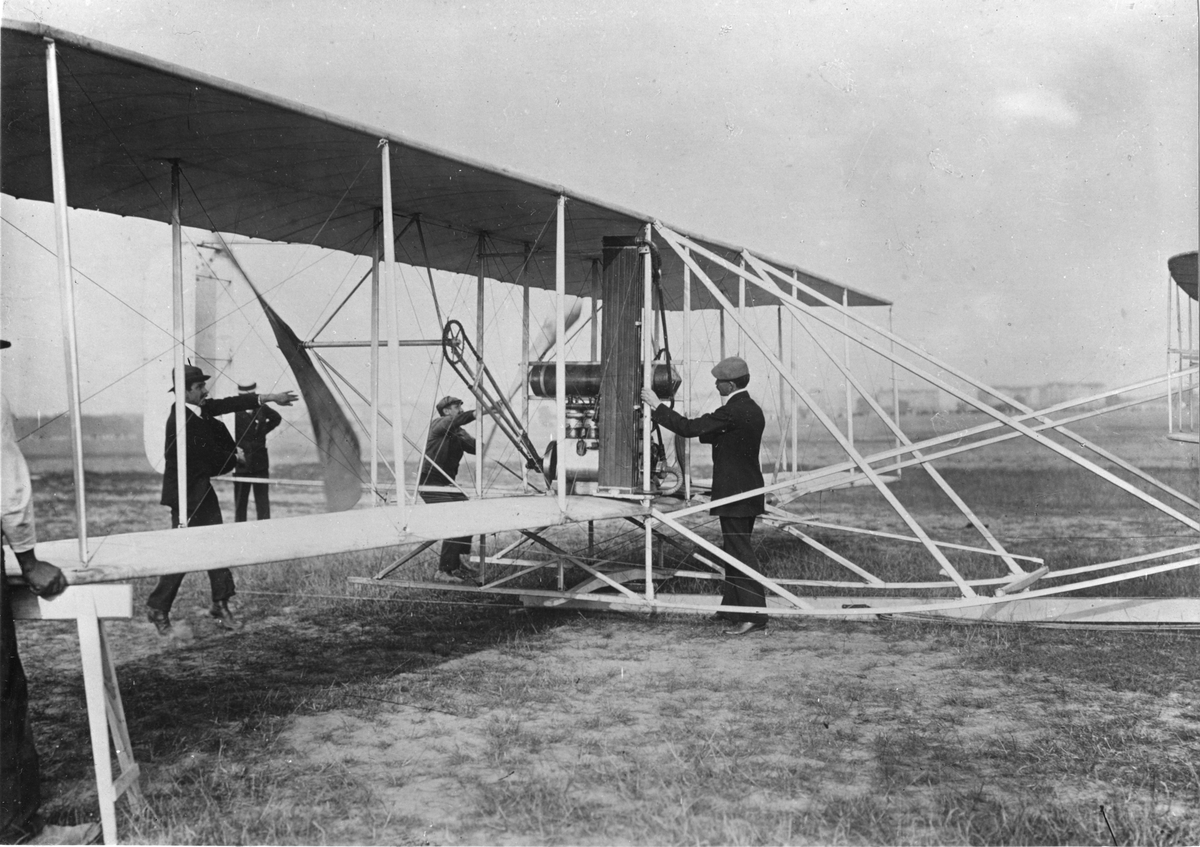 Orville Wrights biplan på Tempelhofer fältet i Berlin.