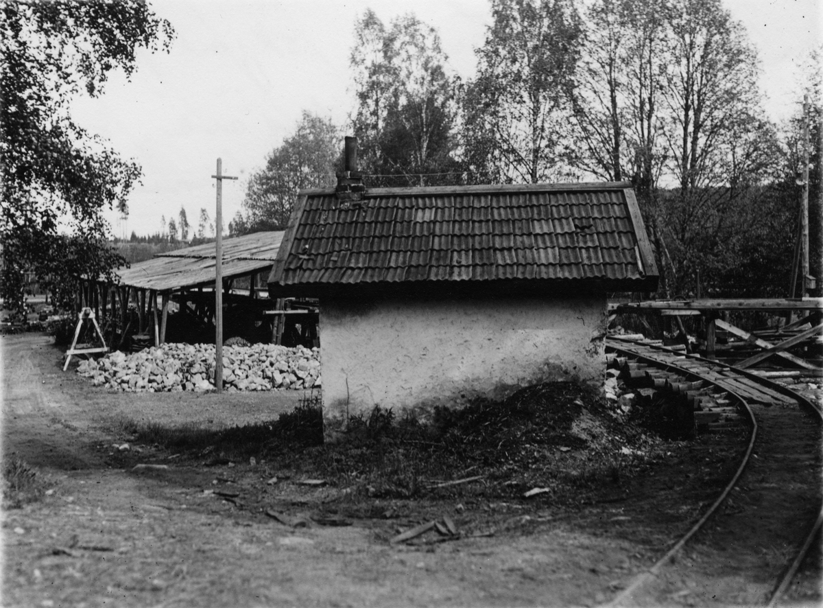 Pershyttan. Råslagarstuga, skjul för de arbetare, råslagare, som krossade malmen för hand till lämplig storlek för rostugnen. I stugan fanns en gjuten bergslagsugn med årtalet 1791.