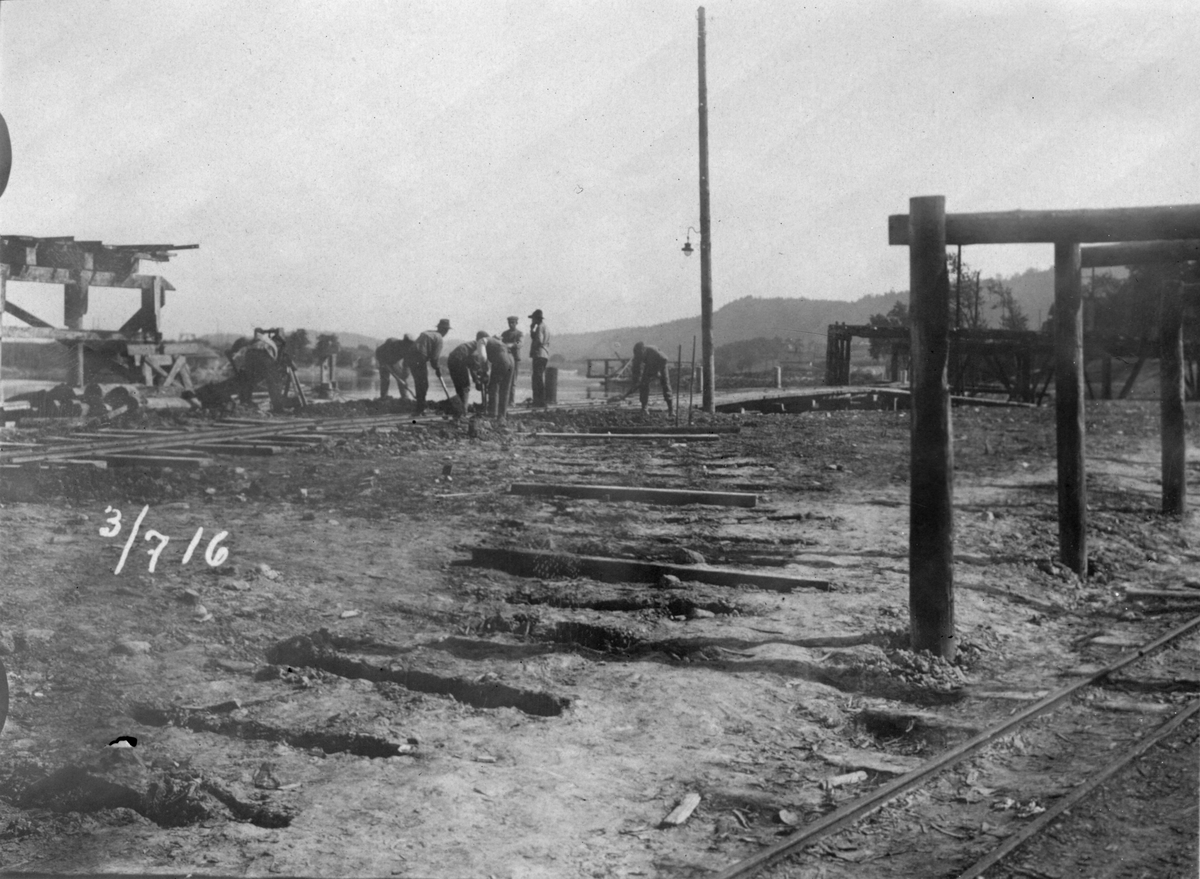 Lilla Edets Pappersbruk i Västergötland. Byggnation av kajplats.