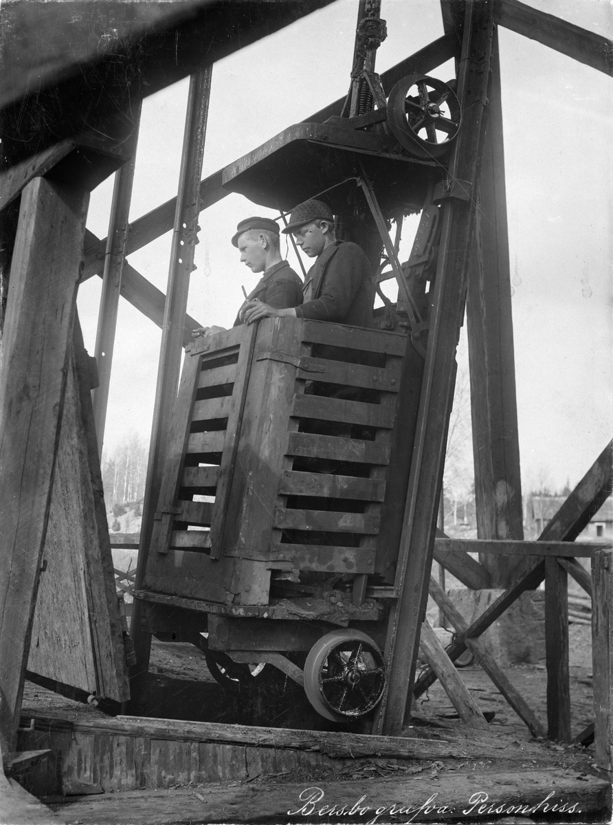 Personalhiss vid Bersbo gruva. (J.E. Thorin är toligen fotograf).