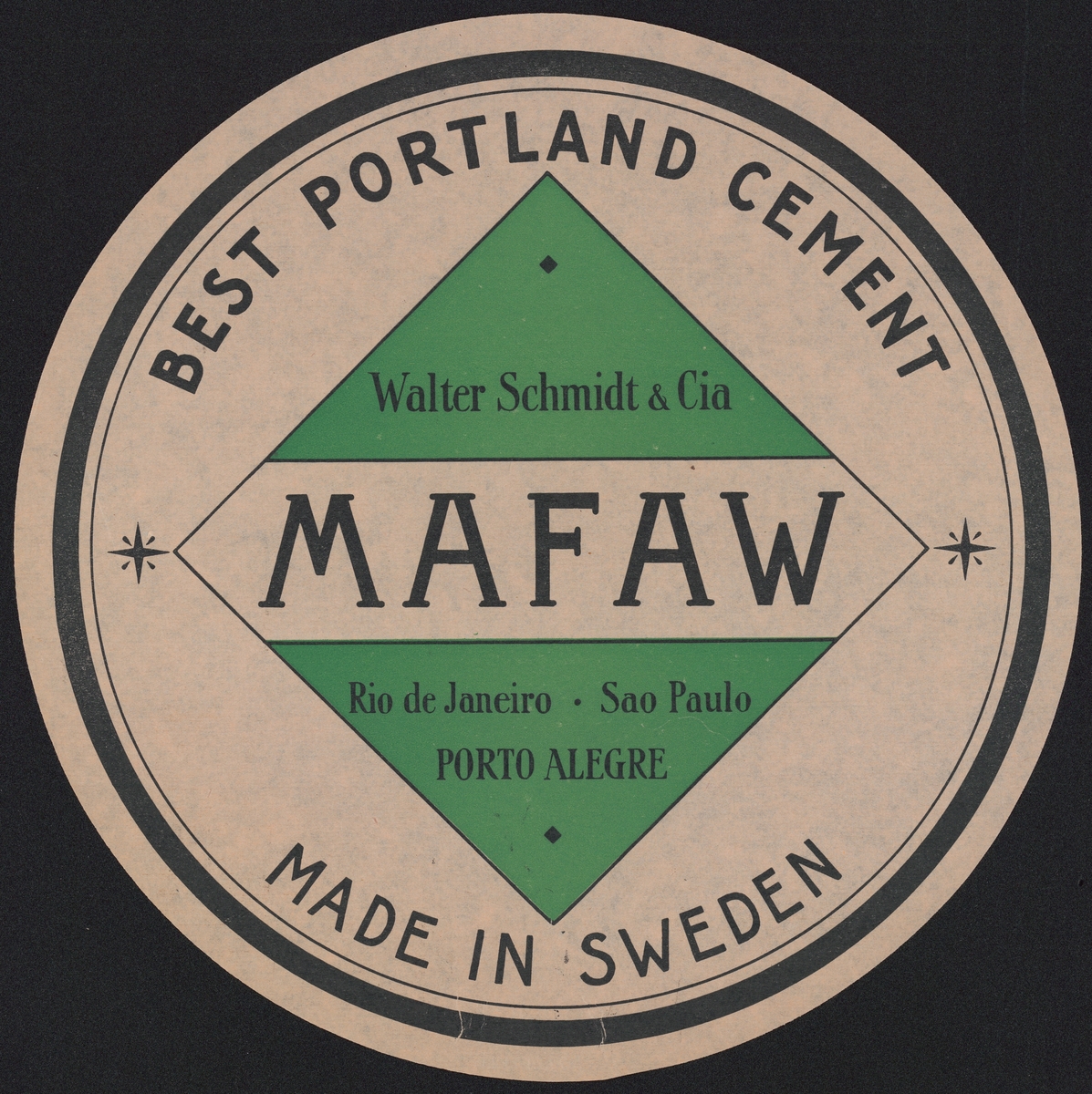 Fabriksmärke för cementpåsar. Best Portland Cement.
