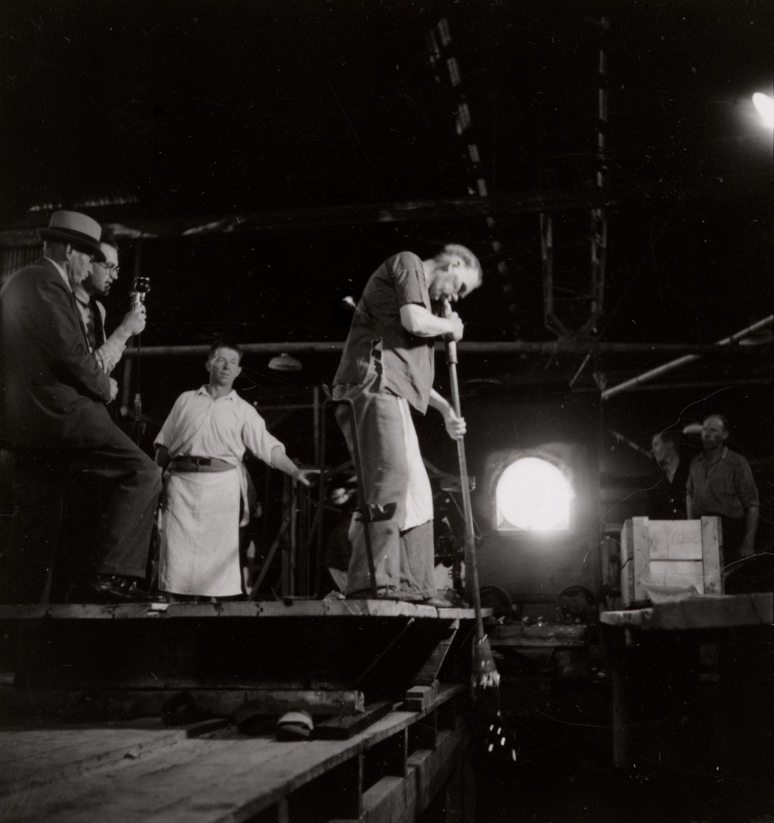 Fönsterglasblåsning i samband med filmning den 12 juni 1941. Valsen färdig att svängas i pålen.