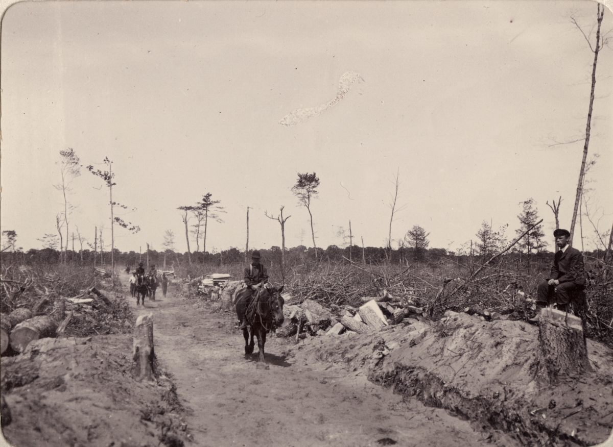 Uppppröjd väg för jernvägsspår (järnvägsspår) genom afvecklingen (avvecklingen). (Michigan). Ur album Fotografier från amerikanska Träkolshyttor 1905/1906.