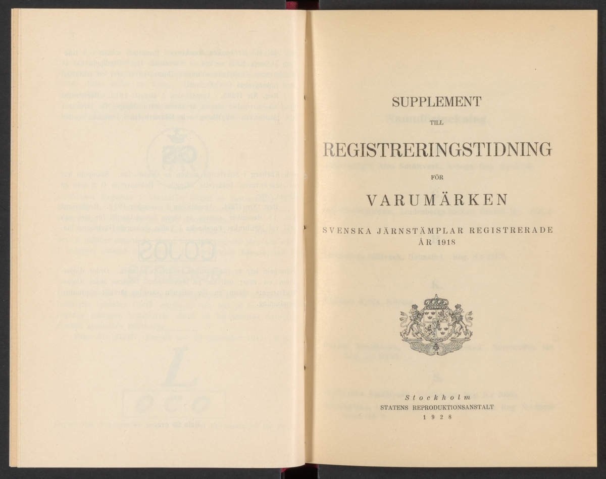 Titel: Svenska järnstämplar 1908-1929. Tryckt. Ur Carl Sahlins bergshistoriska samling.