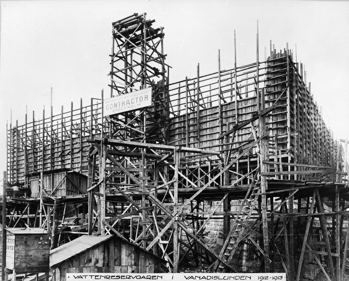 Byggherre: Byggnadsaktiebolaget Contractor, Stockholm. Vattenreservoar i Vanadislunden.