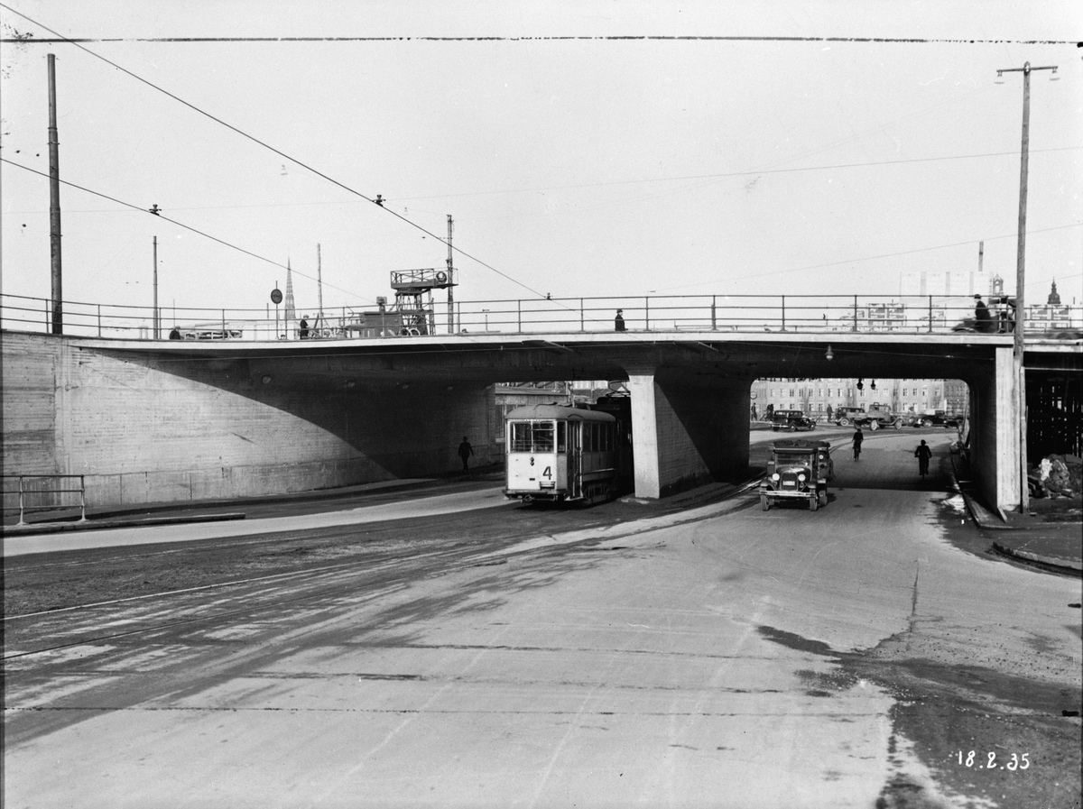 Byggherre: Byggnadsaktiebolaget Contractor, Stockholm. Dubbelviadukten vid Slussen.