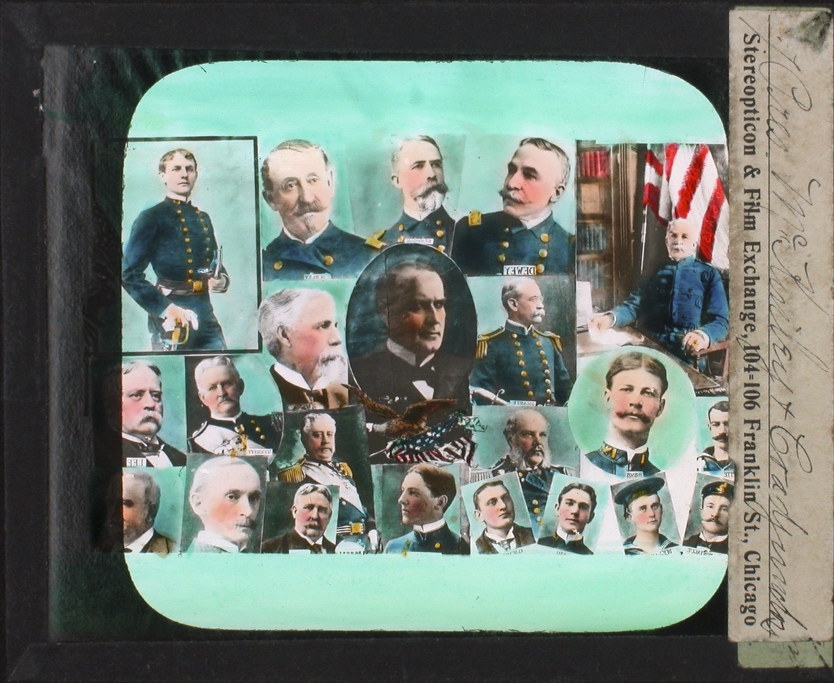 Kolorerade fotografier. Porträtt av officerare.