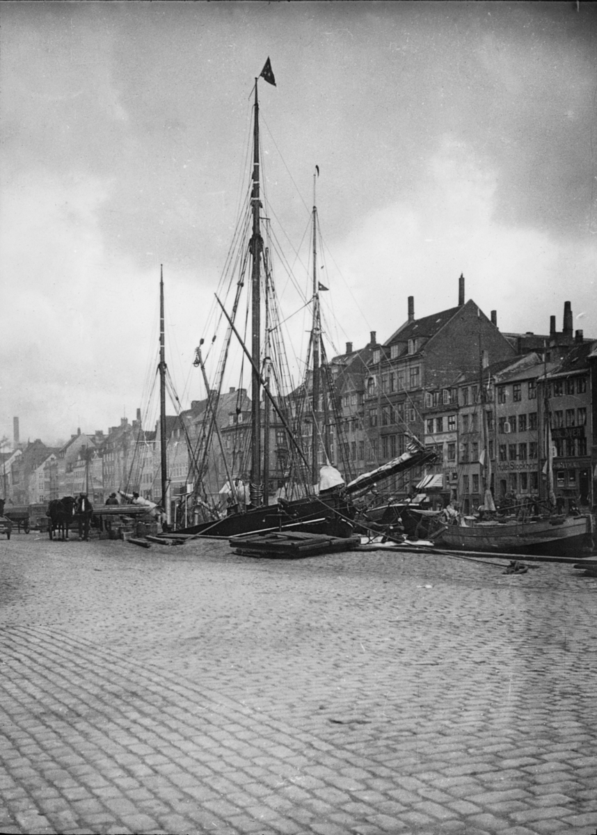 Bilden har förvarats i kartong märkt: Köpenhamn 9. 1908. Text på bild: "Ved Nyhavn".