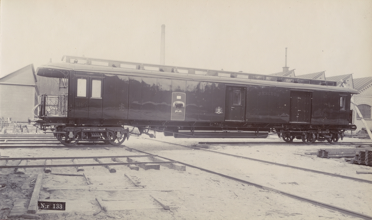 Tågvagn. Kombinerad post- och packvagn. Ur album för Vagnfabriks Aktiebolaget i Södertälge.