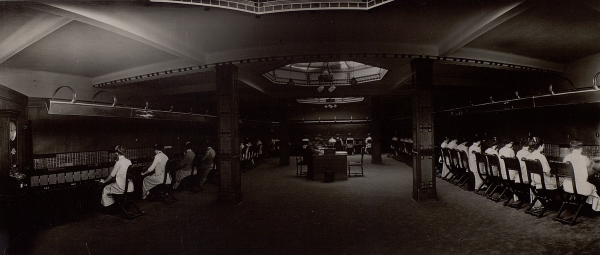 Söderstationen, Högbergsgatan 33, totalvy över telefonsalen .