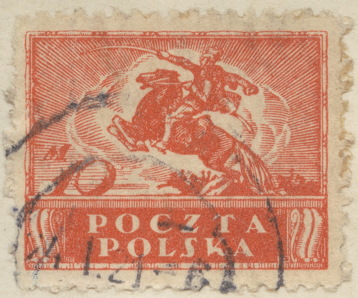 Frimärke från Polen, 1919. Motiv av Ridande Ulan -Symbol för hjältemod- "Serie utg. av Nord Polen under tysk okkupation: världskrig I.