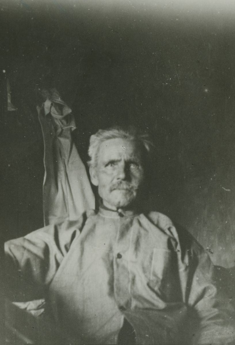 Fotografi från expedition till Peru 1920. Porträtt av äldre man med mustasch.