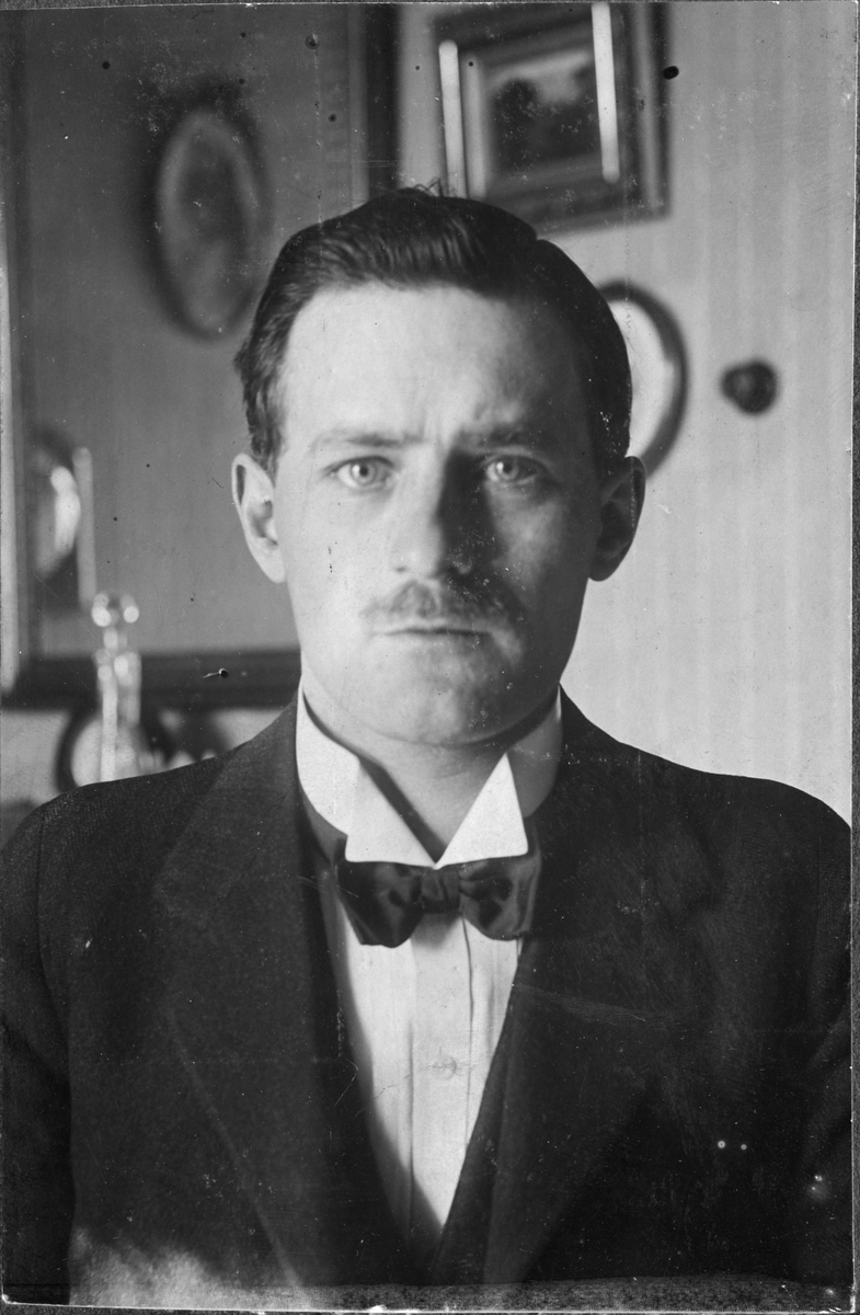 Fotografi ur album från Meisters-Flygaktiebolag i Göteborg. Porträtt av flygpionjären Karl Gustaf Meister.