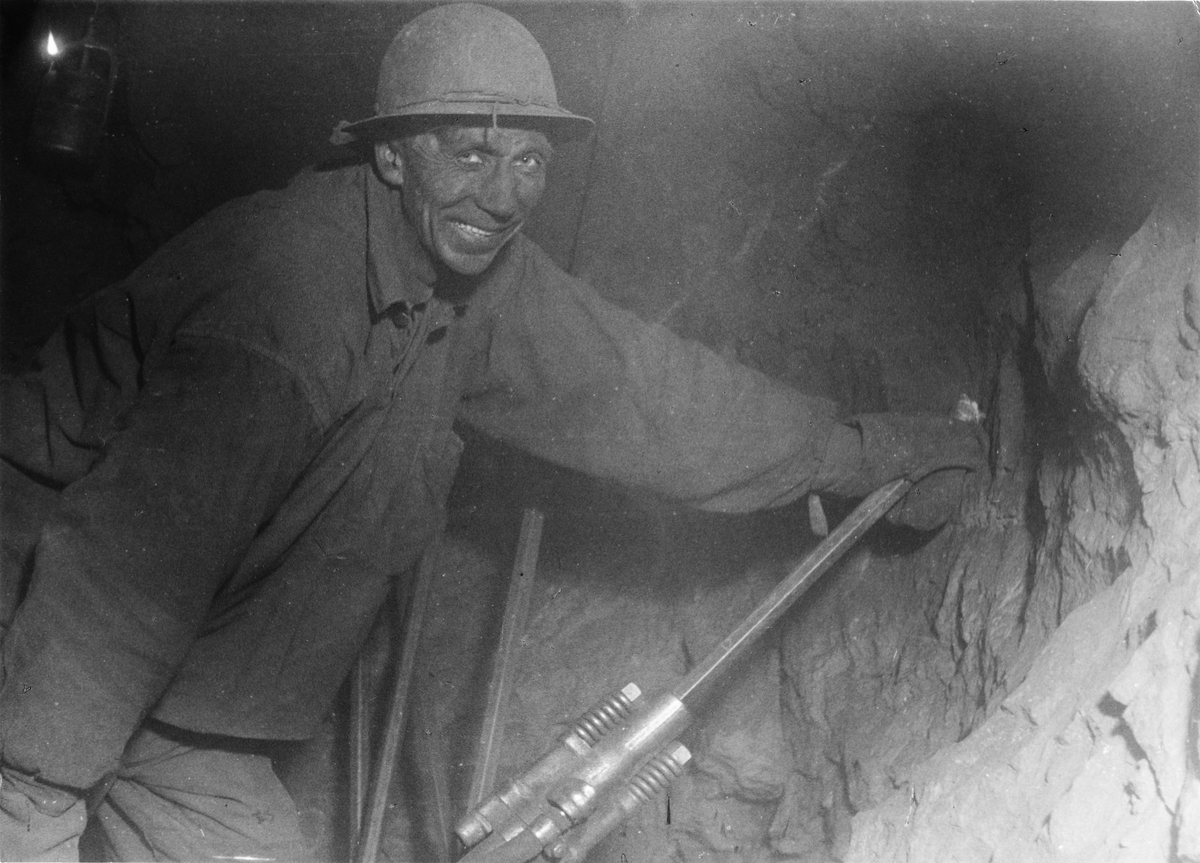 Gruvarbetare i stendamm i Tuolluvaara gruvor i Jukkasjärvi.