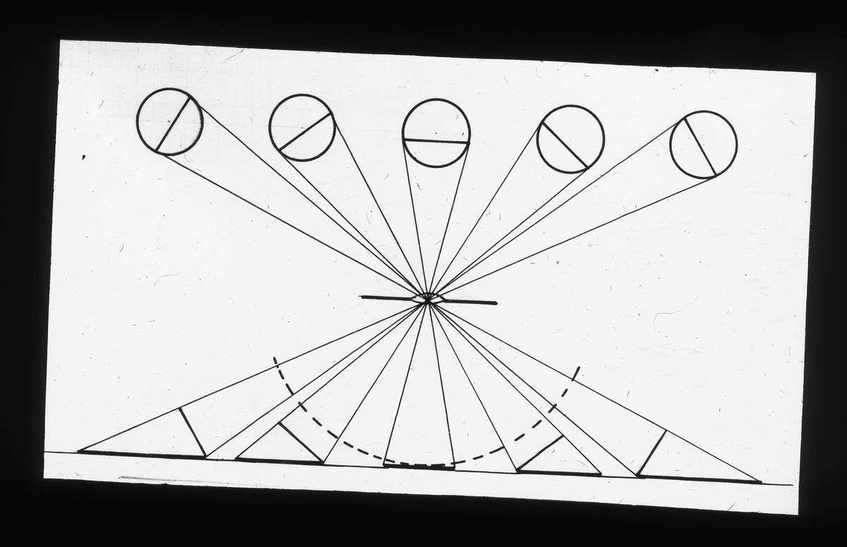 Skioptikonbild från Institutionen för fotografi vid Kungliga Tekniska Högskolan. Använd av professor Helmer Bäckström som föreläsningsmaterial. Bäckström var Sveriges första professor i fotografi vid Kungliga Tekniska Högskolan i Stockholm 1948-1958.