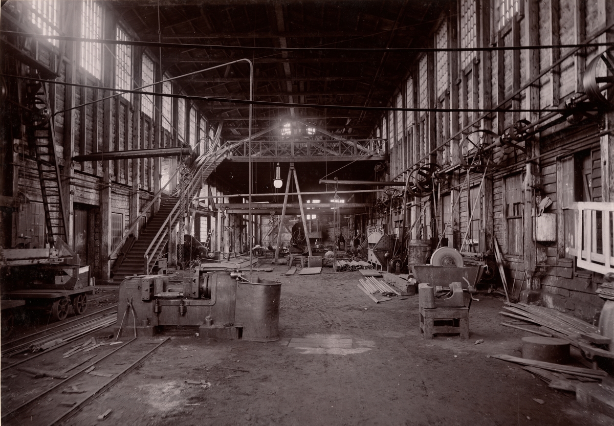 Plåtslagarverkstan "Ryska sjuklet", vid Motala Mekaniska Verkstad 1896.