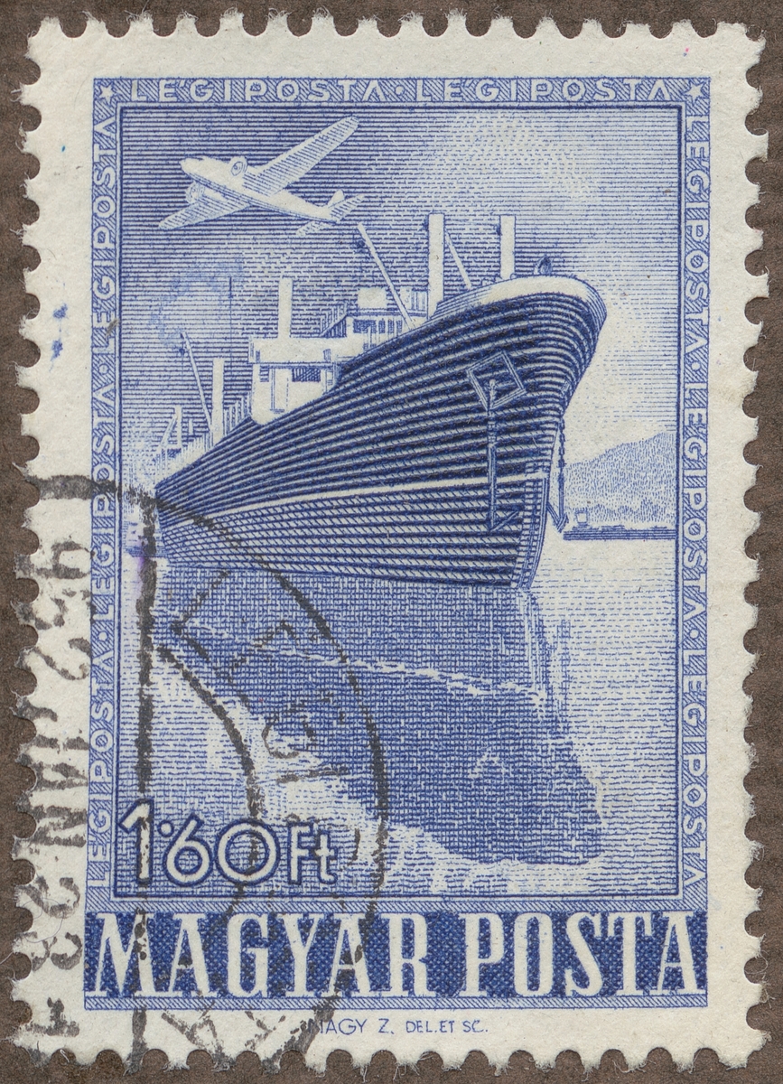 Frimärke från Ungern, 1950. Motiv av Stor Lastångare -Monoplan-