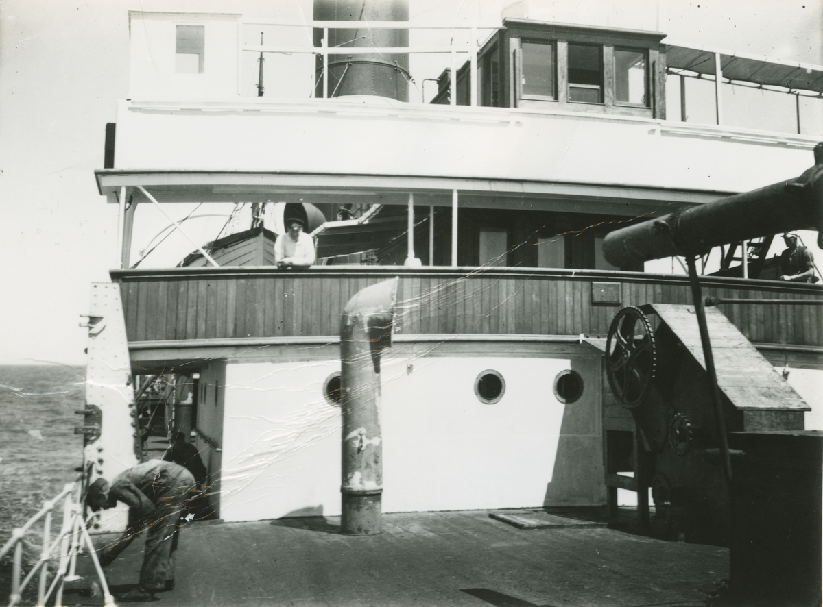 Bild från expedition i Antarktisområdet. Motiv av båt och besättningsmän.