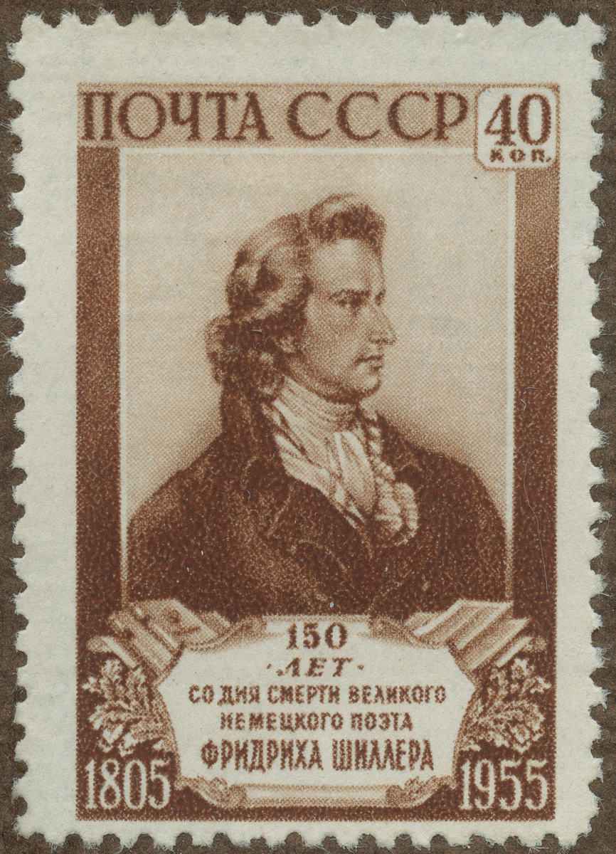 Frimärke från Ryssland, 1955. Motiv av Friedrich von Schiller 1759-1805 Tysk diktare 150-årsminne av hans död: 1805-1955