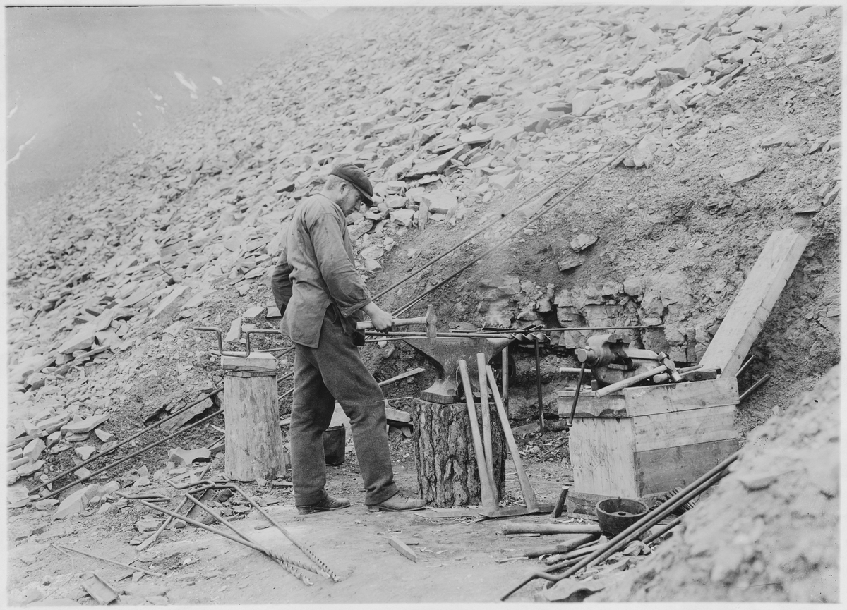 Sveagruvan på Spetsbergen. Gruvsmed i arbete 1918.