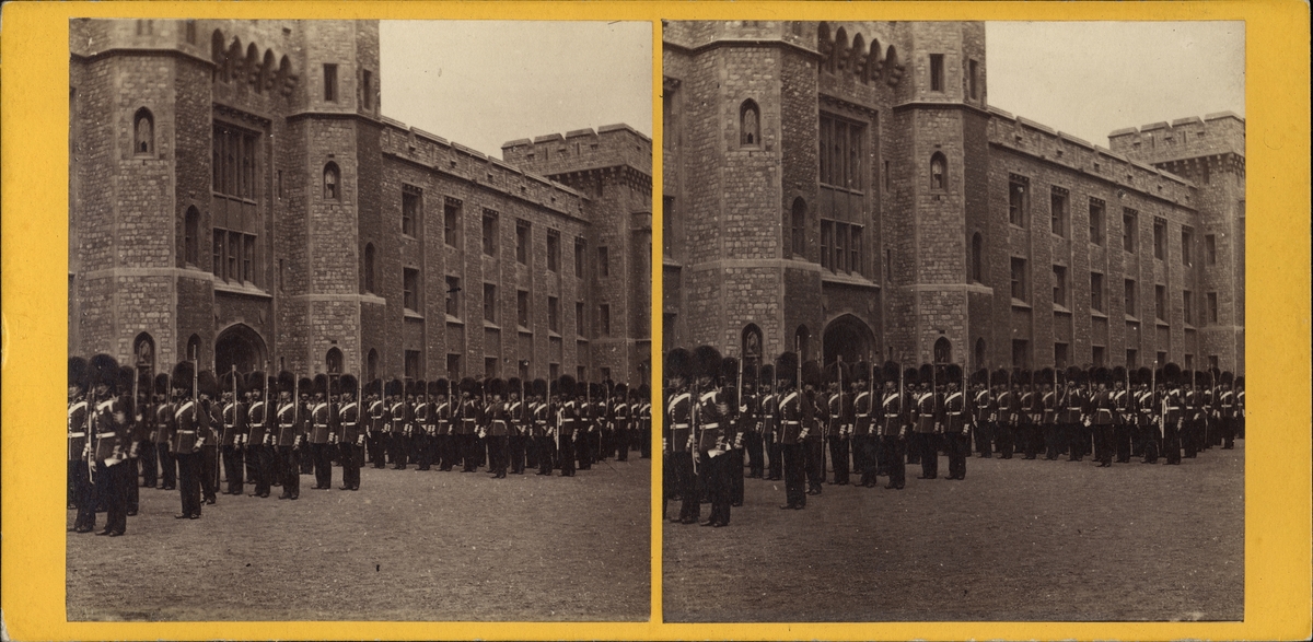 Stereobild av soldater marcherande vid Tower of London.