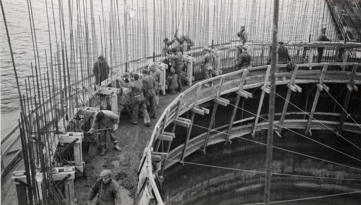 Cementsilo i Slite, Gotland. Byggd av Skånska Cementgjuteriet i november 1946. Detalj av gjutformen.