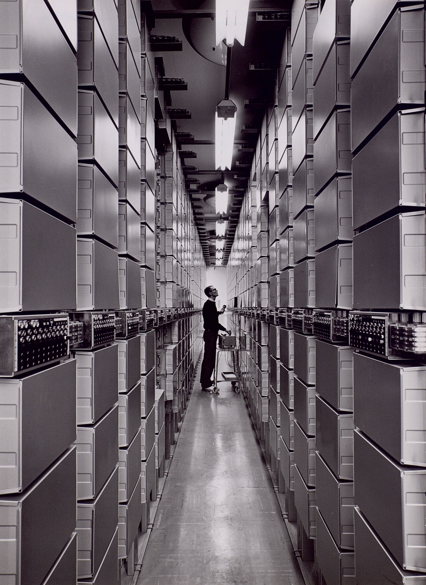 Malmö Förmedlingsstation, 1964. Stativrader med överdrag.