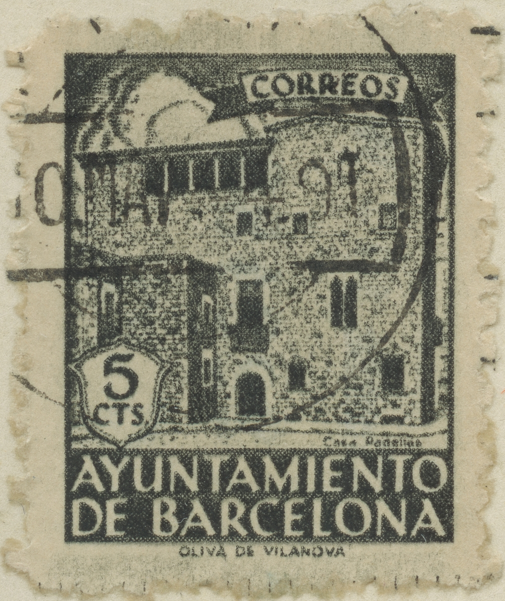 Frimärke från Barcelona (Spanien), 1942. Motiv av Casa Padellàs Barcelona