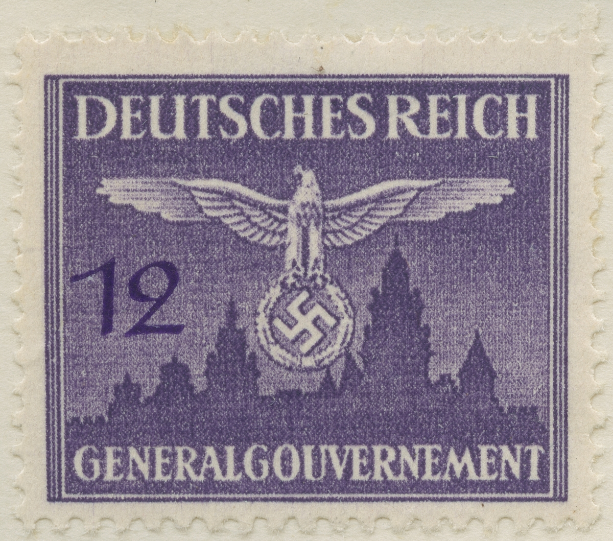 Frimärke från Polen, 1943. Motiv av Borgen i Krakau -Tyska örnen med Nazist emblem- - Tyska ockupationen av Polen: världskrig II-