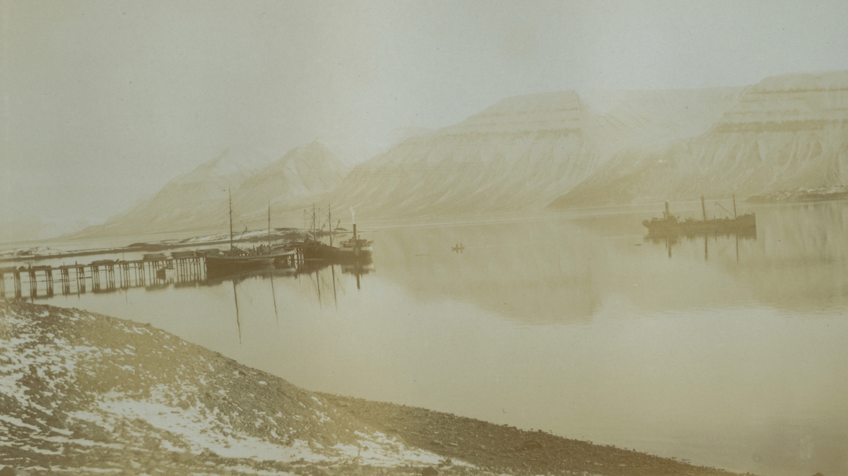 Titel: Fotografi från expedition till Spetsbergen. Vy över Sveagruvans strand.