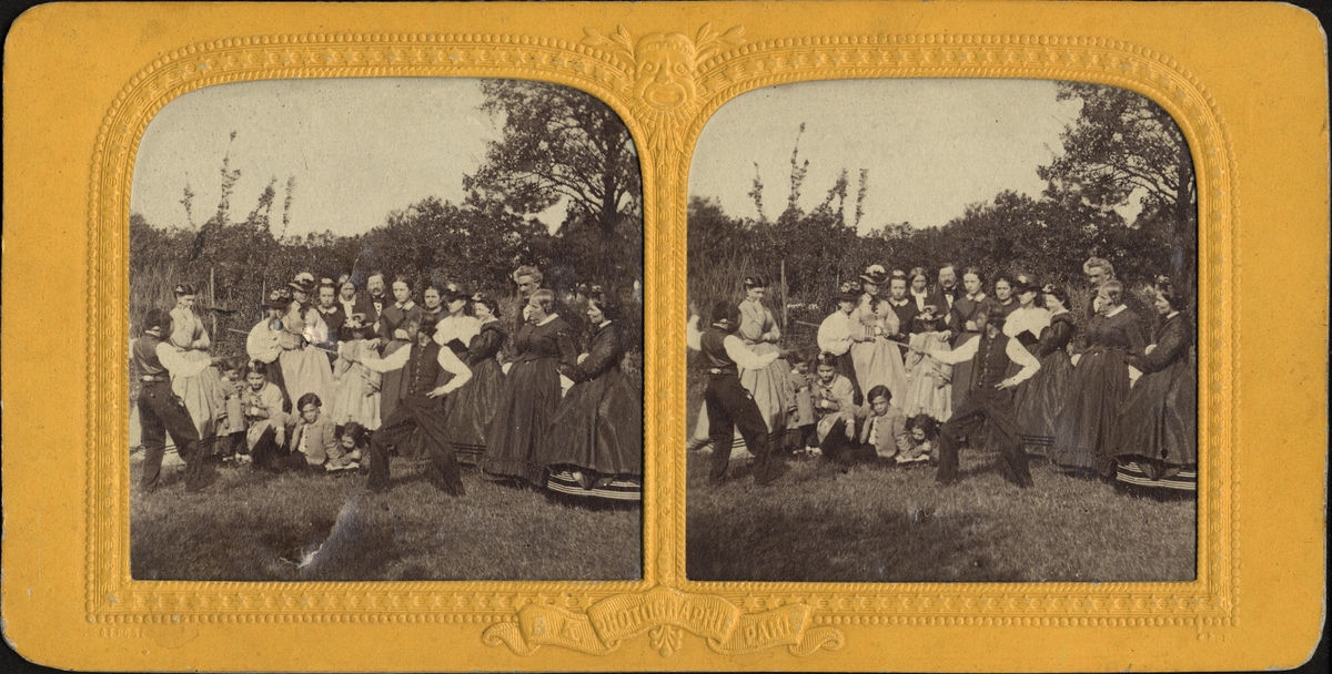 Stereobild av två unga män som fäcktas, invid samling som tittar på.